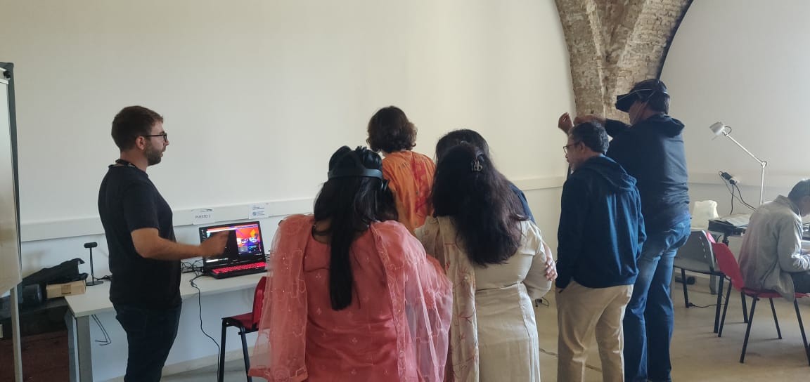 During the day, Ms. Paqui Rosique came in to share with us her digital technology interventions utilising virtual reality devices and the creation of various assistive applications that are inclusive in nature and offer opportunities for both education and actual remote handling, processing, and applications. The team had the opportunity to experience this system and was aided by Ms. Paqui, Mr. Rafael Hernández Arnaiz, and Mr. Salva.